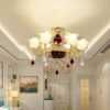 Đèn chùm màu ngọc đỏ mang lại cảm giác vừa sang trọng vừa gần gũi. Sắc đỏ rực rỡ tạo điểm nhấn mạnh mẽ, giúp không gian không bị đơn điệu và trở nên ấm áp hơn.6.2 Phong thủy