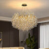 Khung đèn bằng nhôm nguyên khối, được xử lý sơn tĩnh điện, chống oxy hóa và hoen gỉ. Các chuỗi phale cao cấp được mài cắt công phu, xếp lớp so le để ánh sáng tán đều, lung linh khi nhìn từ xa, đồng thời không gây lóa mắt khi ngồi ngay dưới.Ánh sáng đều, đẹp – 12 đui đèn G9