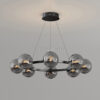 Điểm đặc biệt ở ART-602 chính là phần chao thủy tinh thiết kế dạng hình giọt hoặc bầu mềm mại, gắn tinh xảo trên từng nhánh đèn. Thủy tinh trong suốt giúp ánh sáng lan tỏa đều, khúc xạ nhẹ nhàng, tạo nên những dải sáng lung linh, nâng tầm bầu không khí sang trọng cho toàn bộ không gian. Dưới ánh đèn, các chao thủy tinh phản chiếu và cộng hưởng ánh sáng, mang lại hiệu ứng thị giác vô cùng cuốn hút.