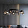 Khung đèn bằng hợp kim chất lượng cao, sơn tĩnh điện bảo vệ bề mặt, chống gỉ sét và bám bụi. Các chao thủy tinh được thổi thủ công, trong vắt và bền chắc, có khả năng tán xạ ánh sáng tuyệt vời, làm tăng chiều sâu không gian và mang lại hiệu ứng chiếu sáng tinh tế.10 đui đèn G9 – Ánh sáng đa hướng, mềm mại