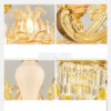 - Ánh sáng vàng dịu từ bóng kết hợp với sắc óng ánh của mạ vàng và độ trong của pha lê tạo nên hiệu ứng thị giác sang trọng, đồng thời mang lại cảm giác ấm áp và thư giãn.