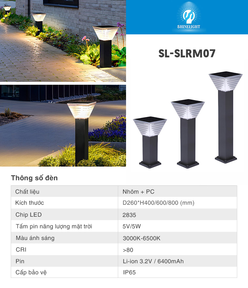 + Tên sản phẩm : Đèn nấm sân vườn năng lượng mặt trời SL-SLRM07