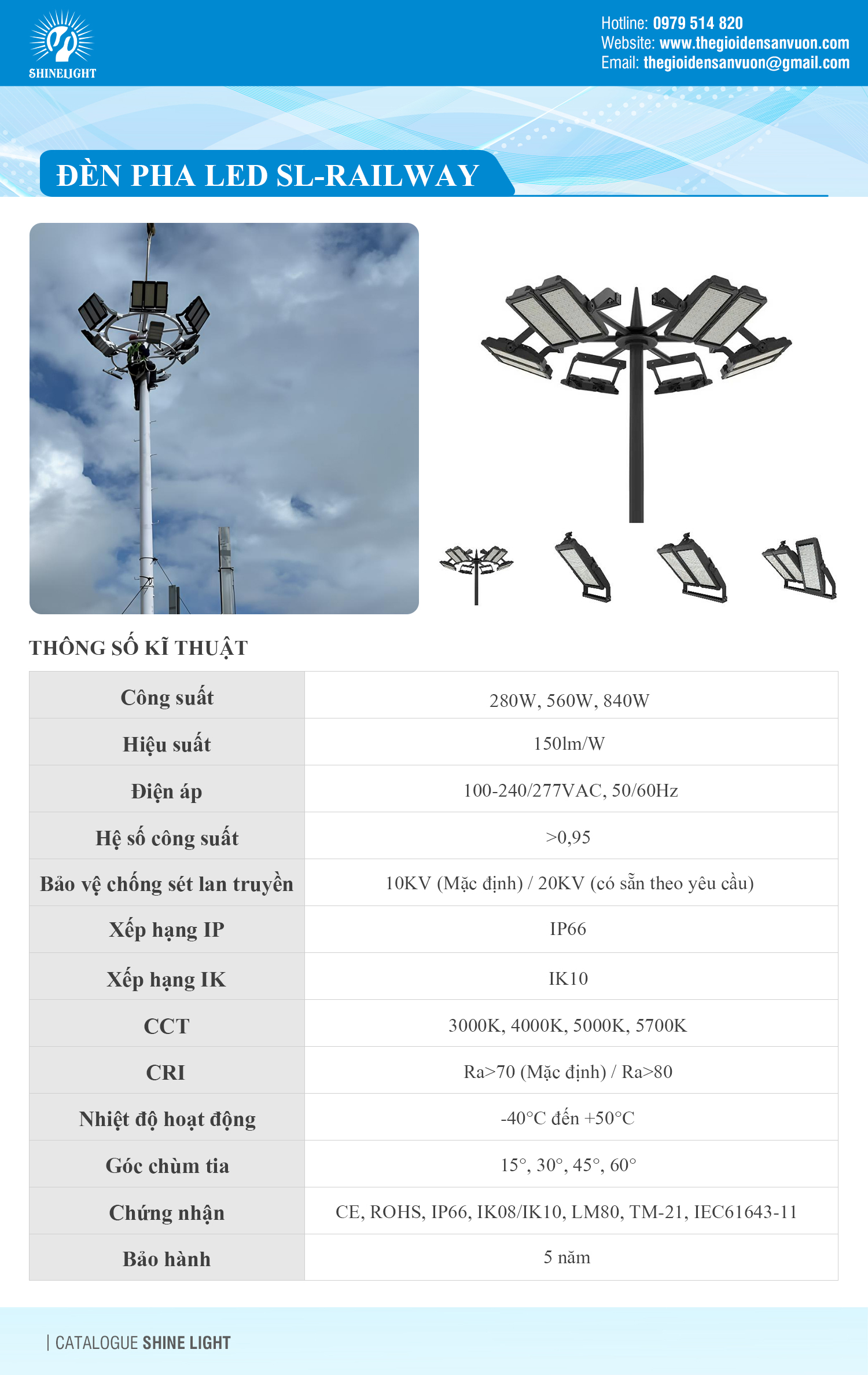 Đèn pha LED cho trụ cột giàn nâng hạ chiếu sáng khu trung tâm bến bãi ga tàu đường sắt là lựa chọn lý tưởng trong các dự án hạ tầng quy mô lớn. Với độ bền cao, hiệu suất vượt trội và khả năng tích hợp điều khiển thông minh, sản phẩm không chỉ tiết kiệm chi phí mà còn nâng tầm chất lượng ánh sáng trong mọi điều kiện hoạt động.