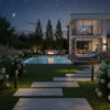 Sân vườn không còn là những mảng sáng – tối rời rạc, mà trở thành một dòng trải nghiệm liền mạch.